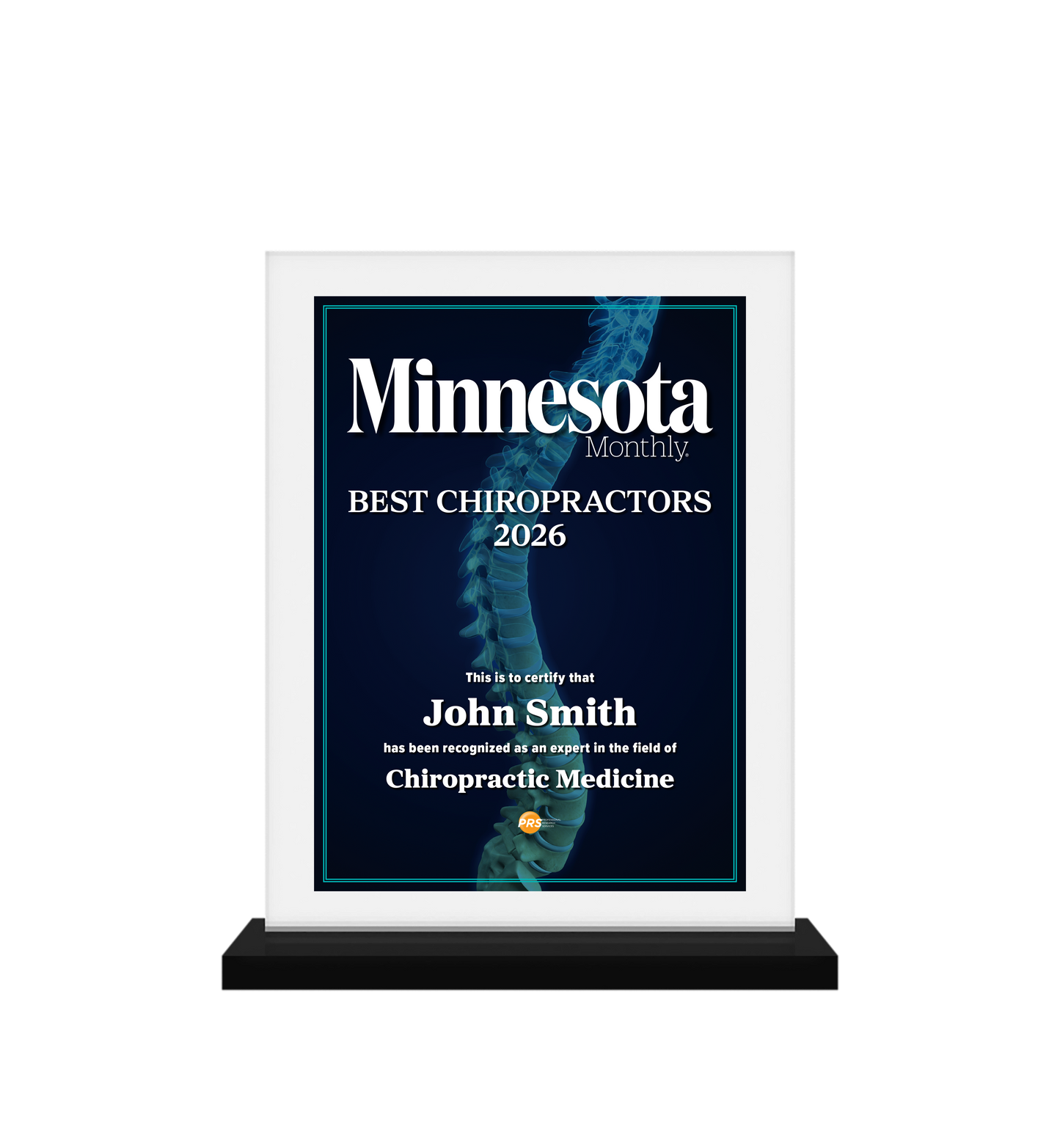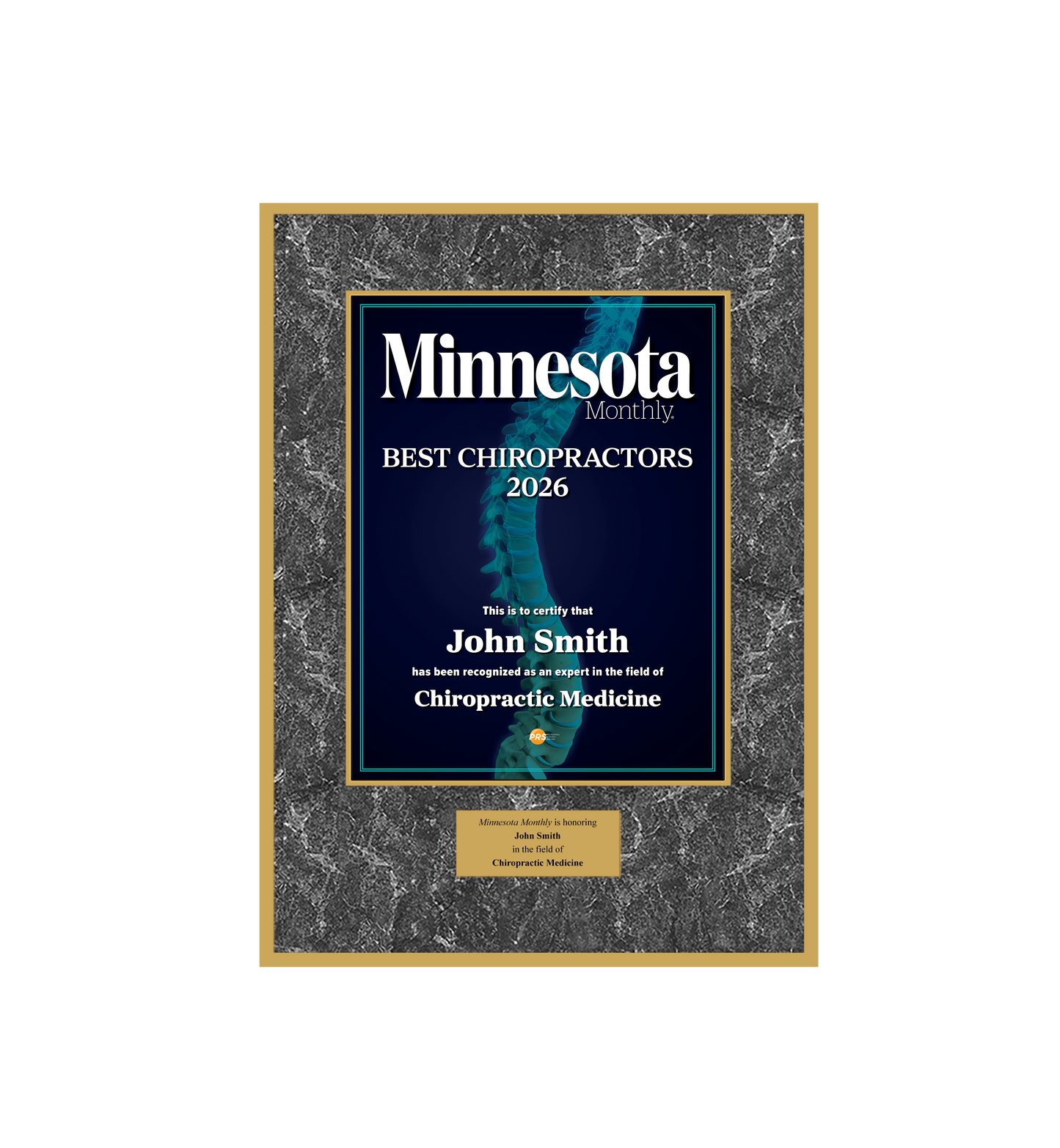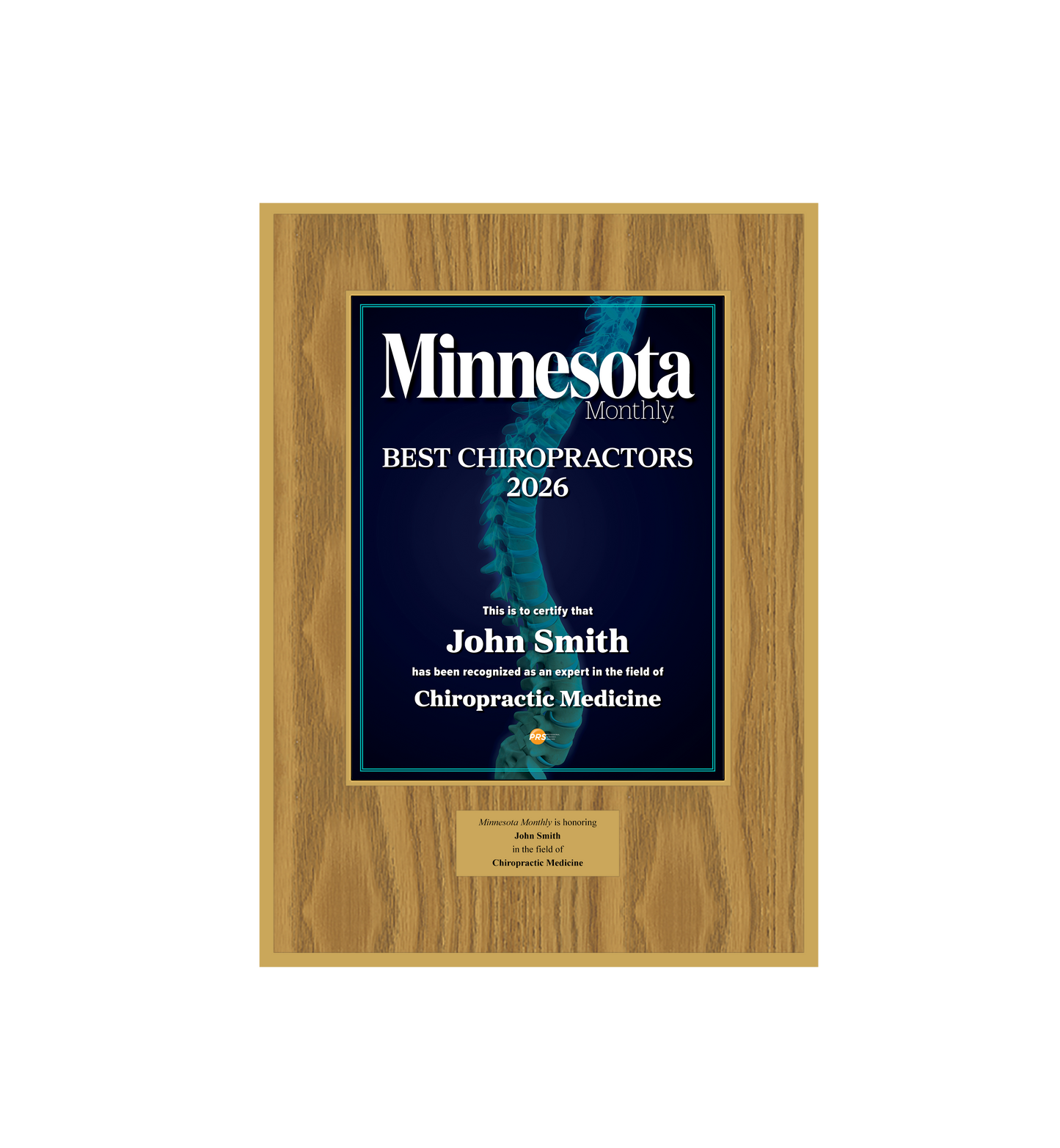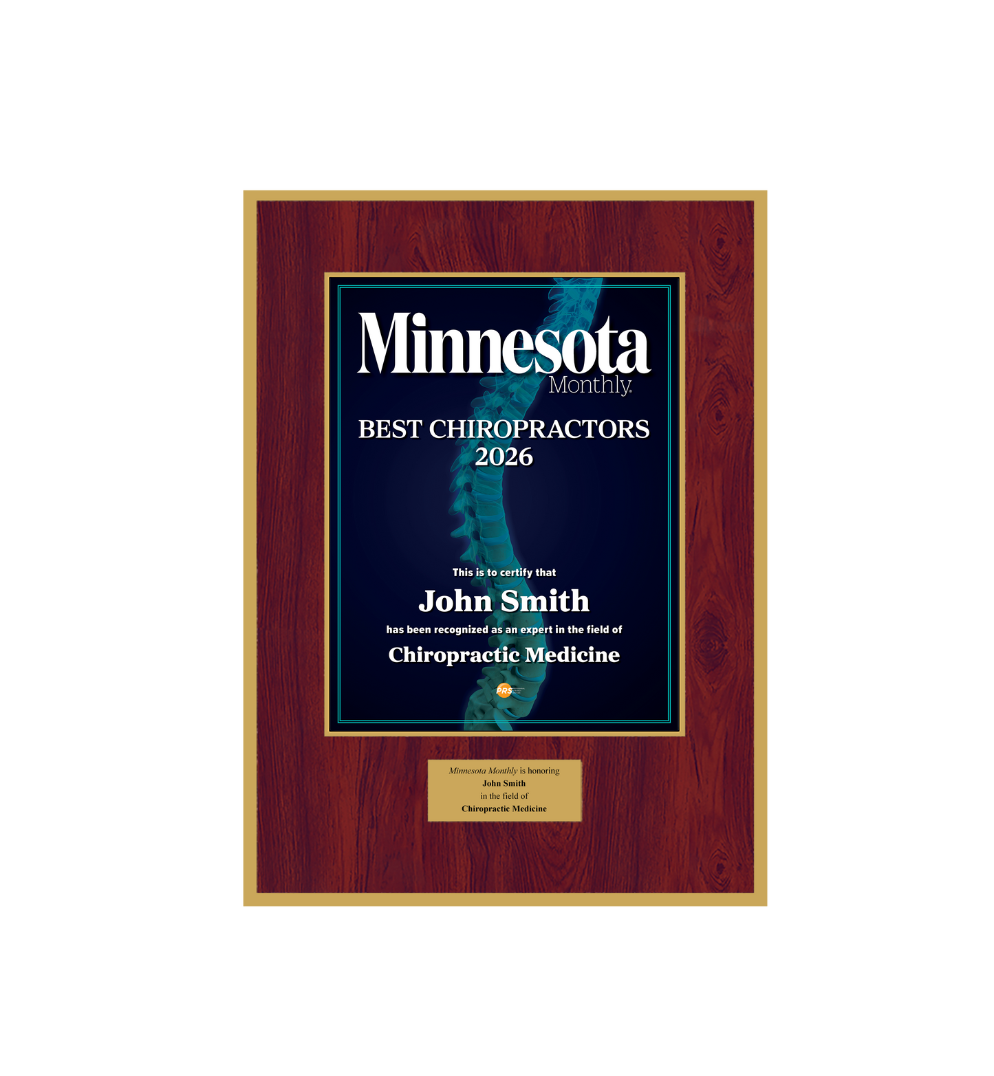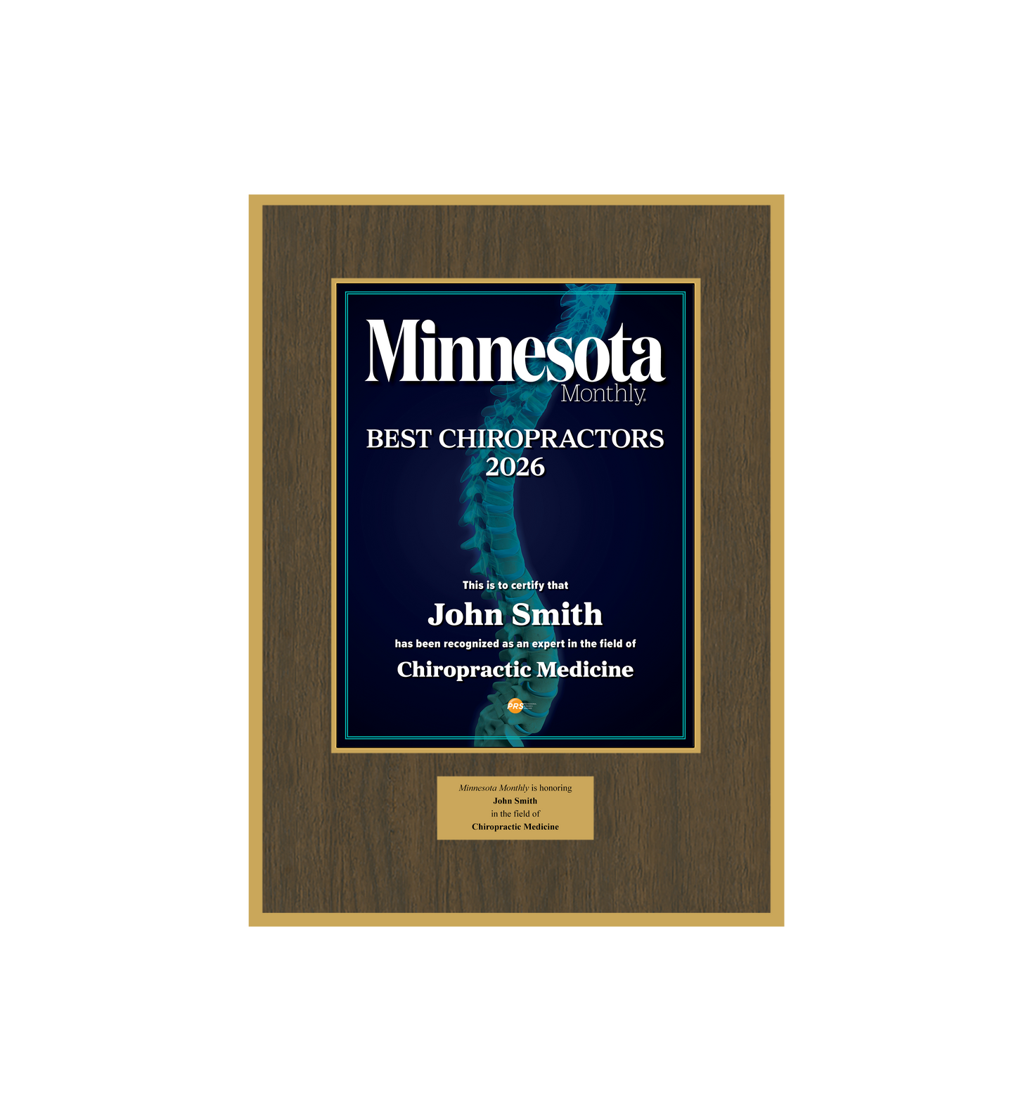 Congratulations! You've been named a Minnesota Monthly Best Chiropractor! To commemorate this special honor, you have the opportunity to purchase an official plaque for your home or office!