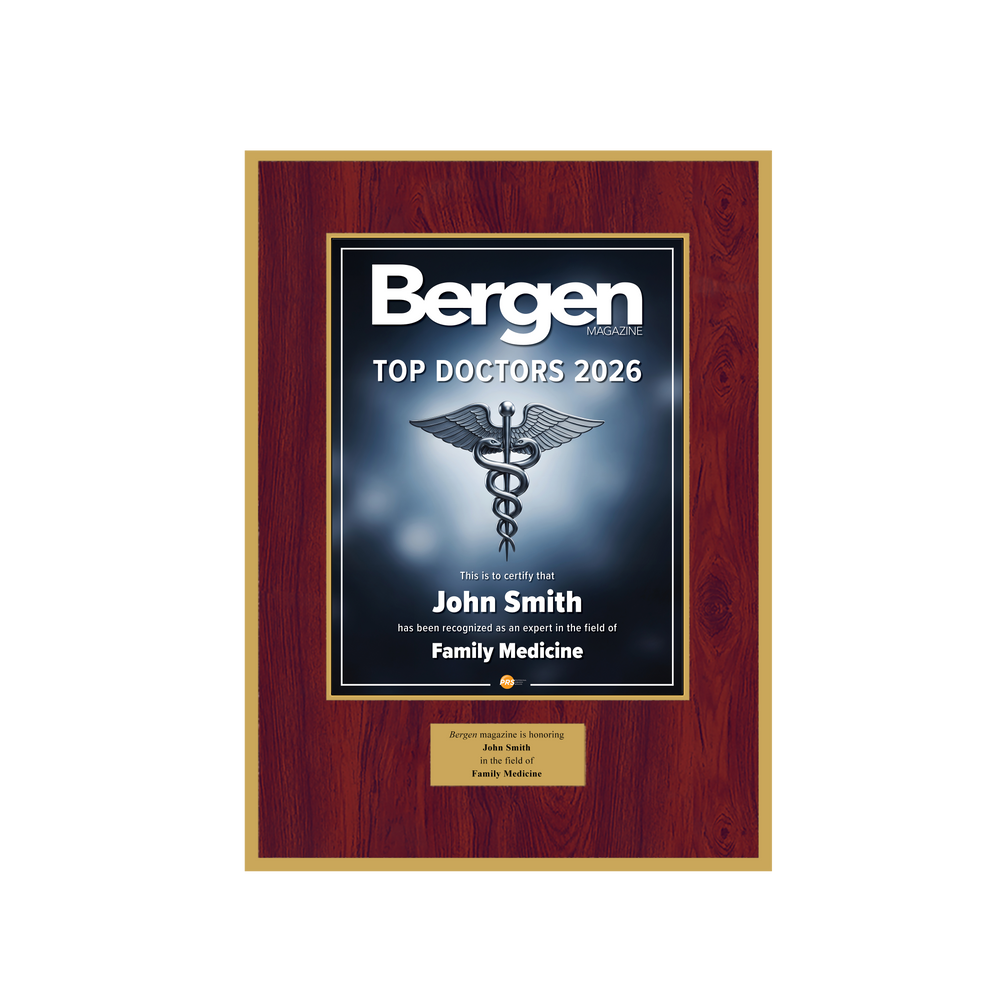 Congratulations! You've been named a Top Doctor! To commemorate this special honor, you have the opportunity to purchase an official plaque for your home or office!