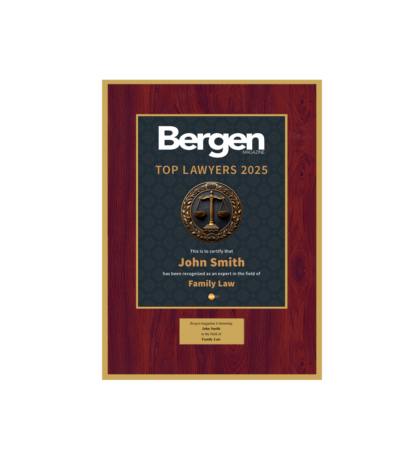 Congratulations! You've been named a Top Lawyer! To commemorate this special honor, you have the opportunity to purchase an official plaque for your home or office!