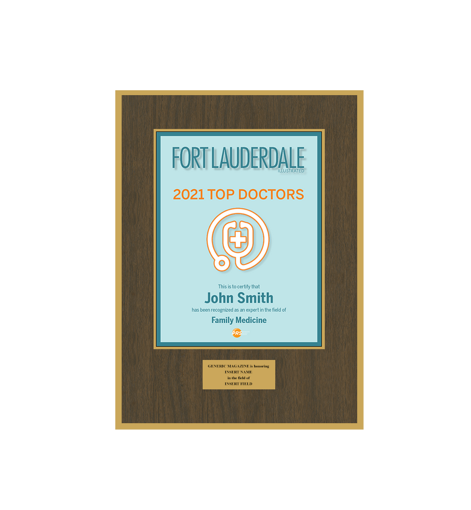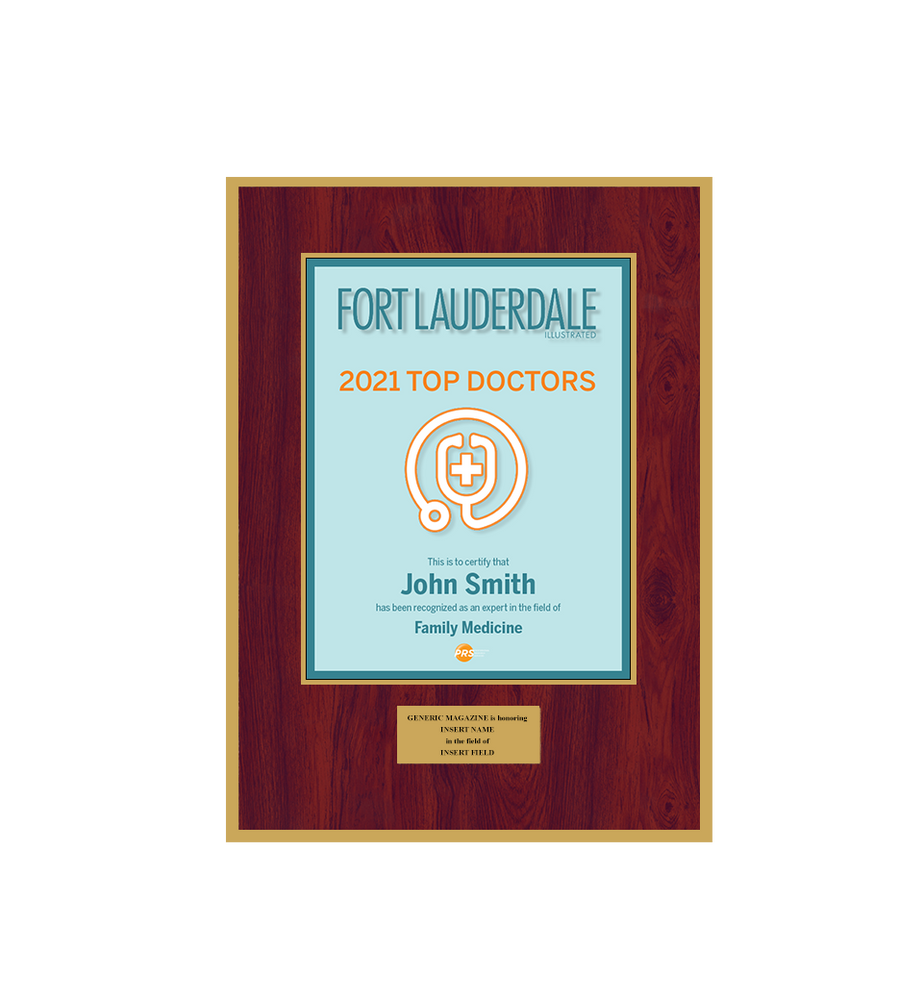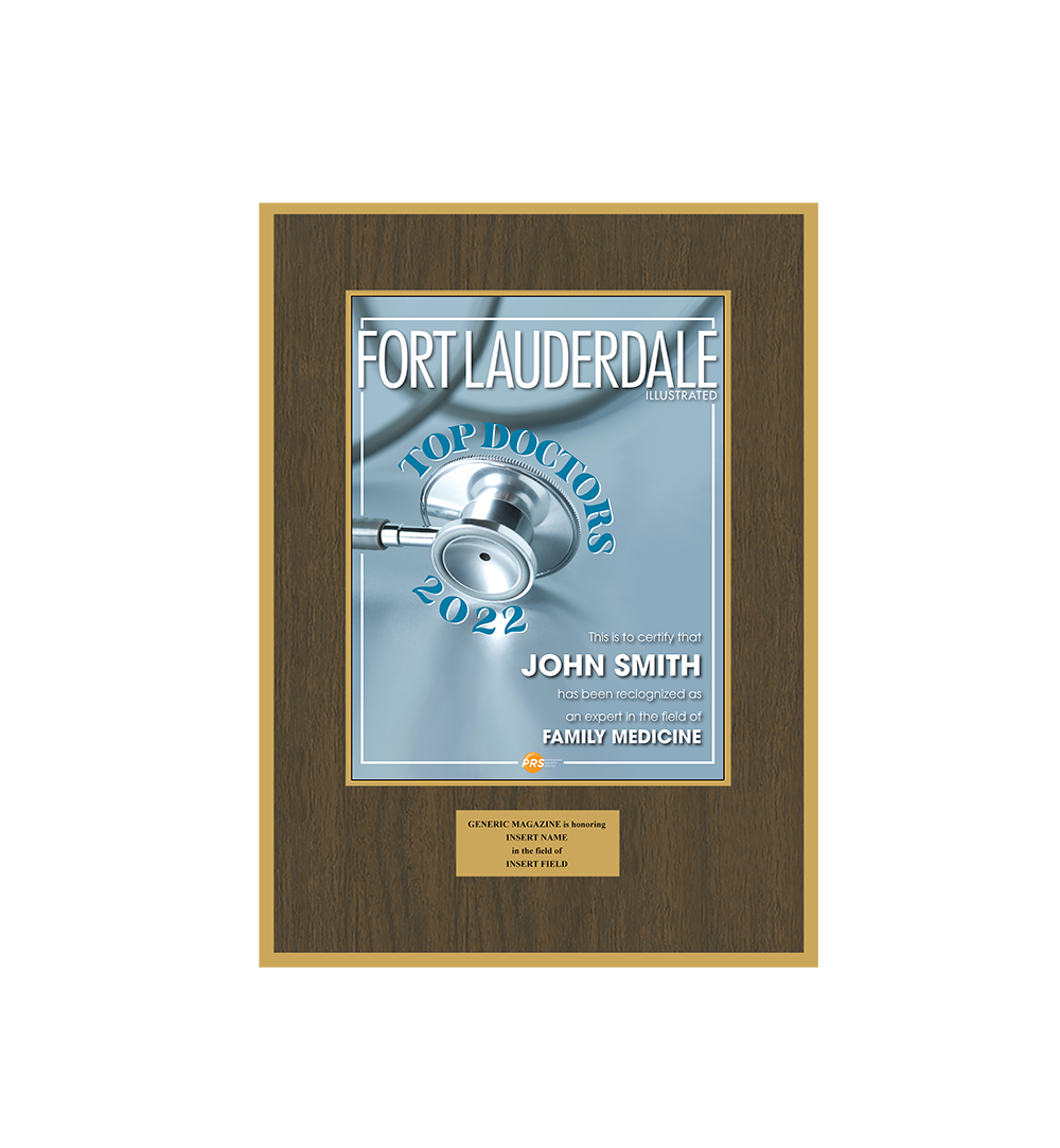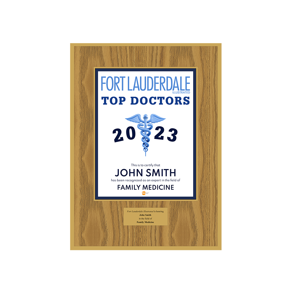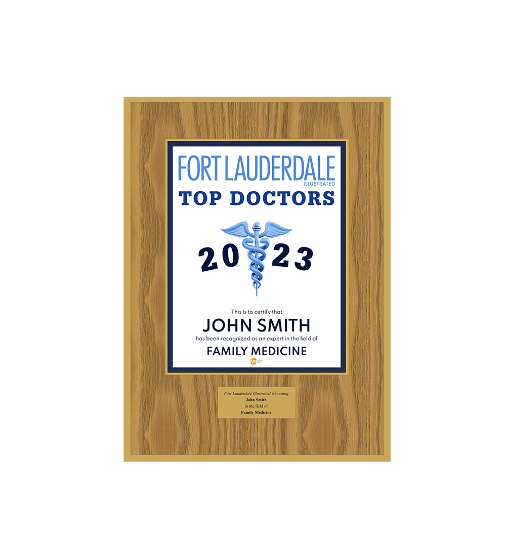 Congratulations! You've been named a Top Doctor! To commemorate this special honor, you have the opportunity to purchase an official plaque for your home or office!