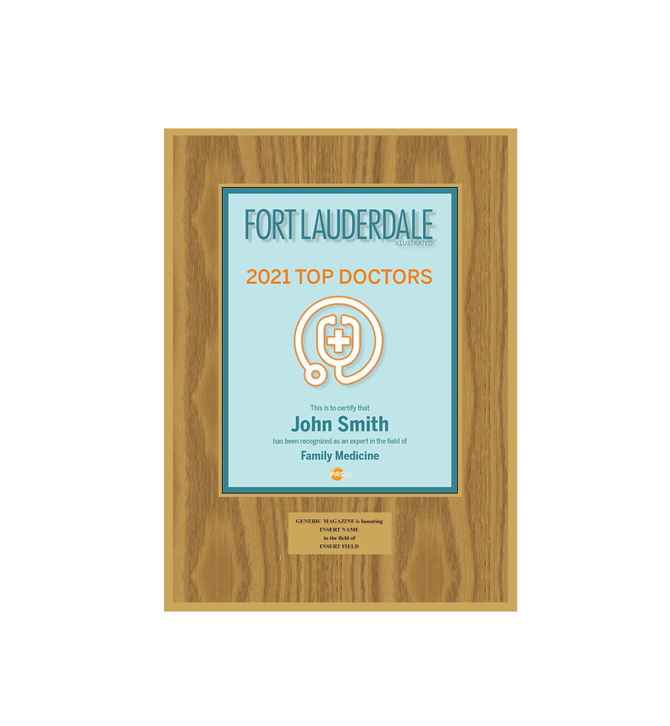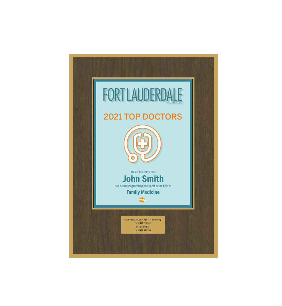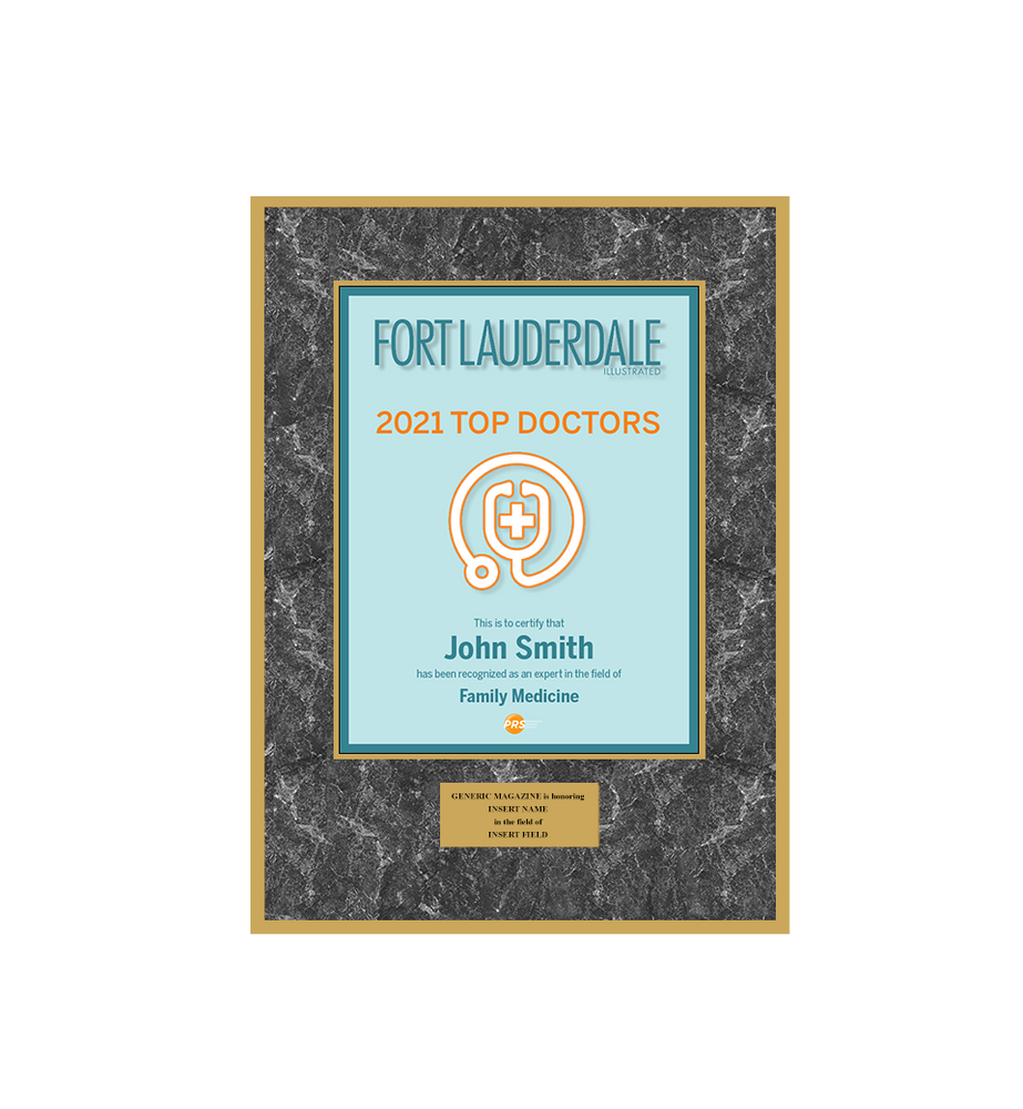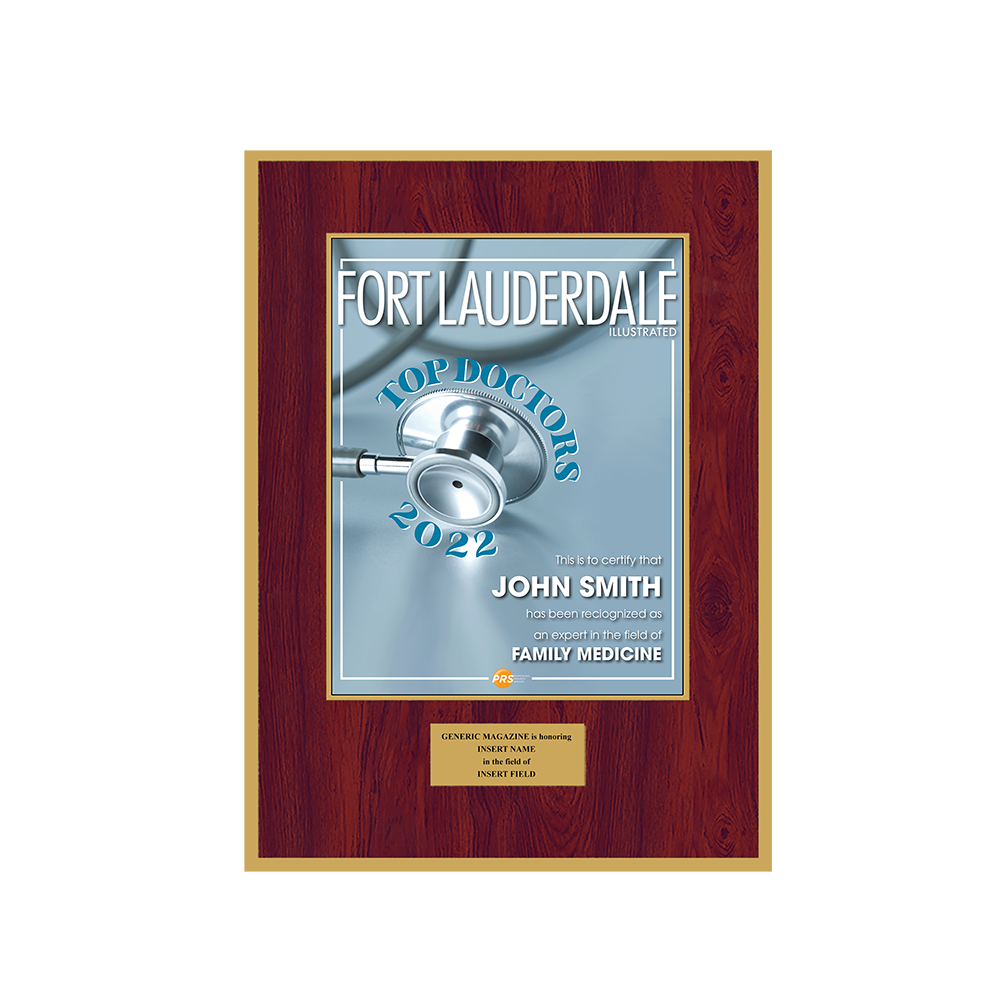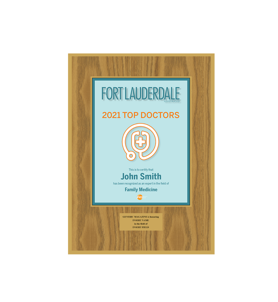 Congratulations! You've been named a Top Doctor! To commemorate this special honor, you have the opportunity to purchase an official plaque for your home or office!