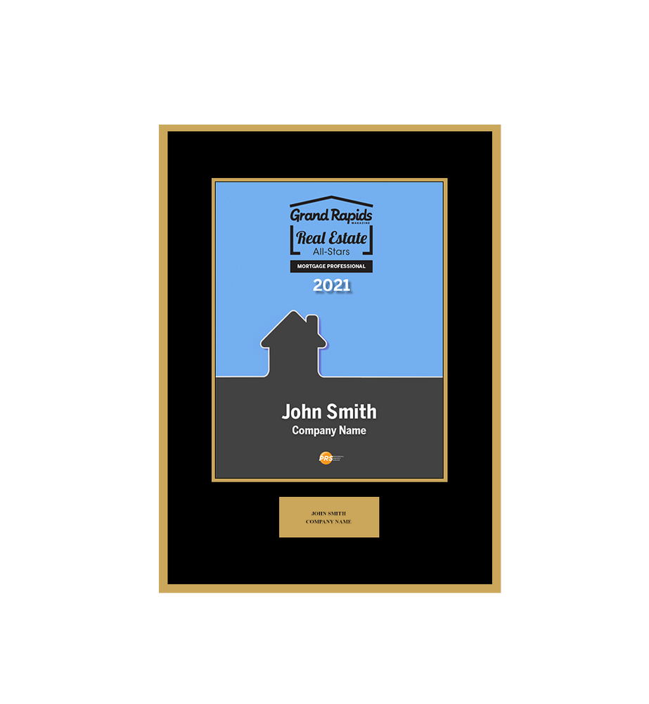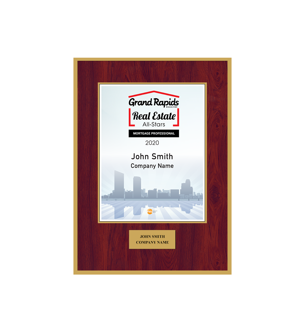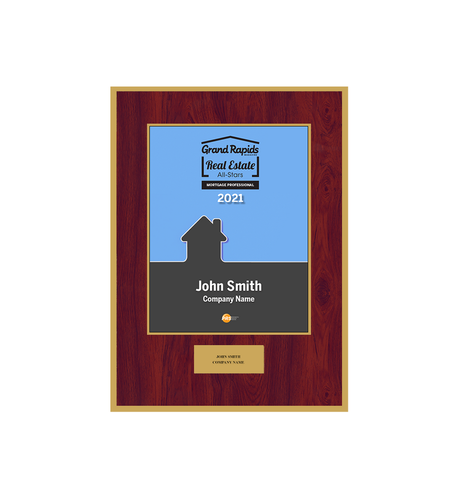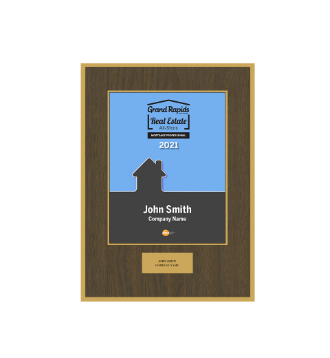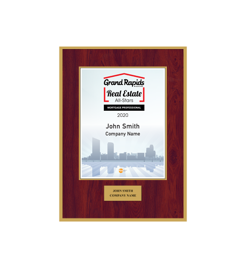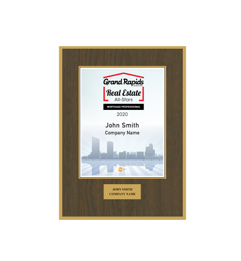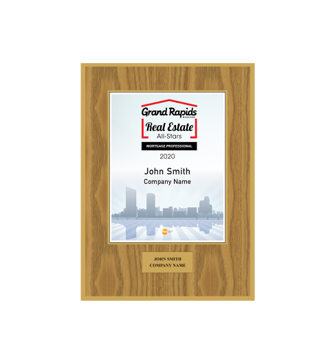 Congratulations! You've been named a Grand Rapids Magazine Top Mortgage Professional! To commemorate this special honor, you have the opportunity to purchase an official plaque for your home or office!