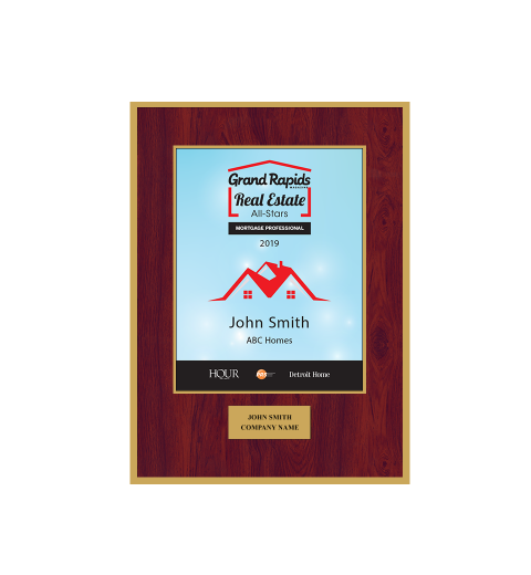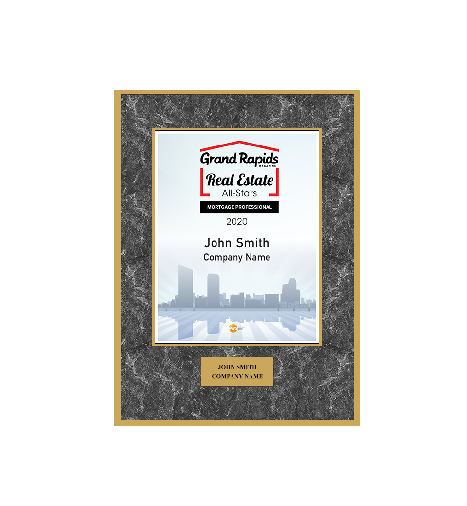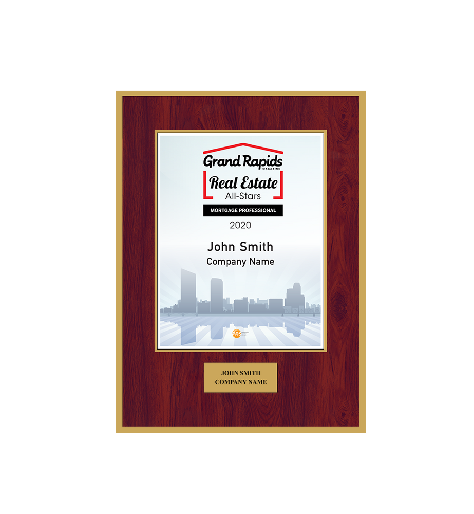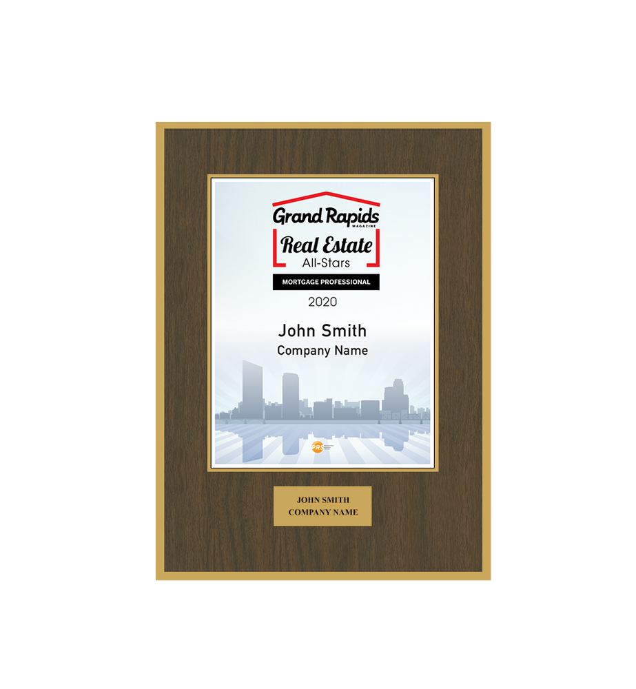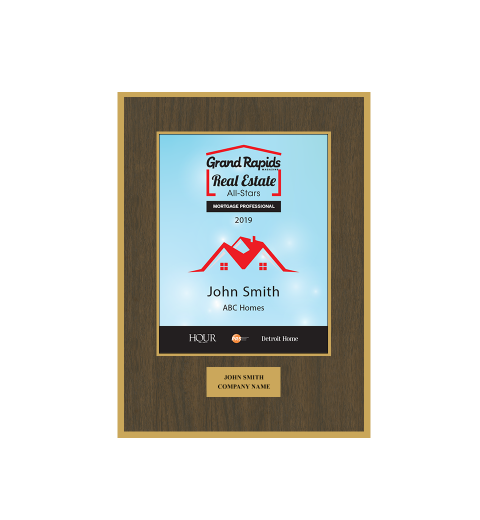 Congratulations! You've been named a Grand Rapids Magazine Top Mortgage Professional! To commemorate this special honor, you have the opportunity to purchase an official plaque for your home or office!